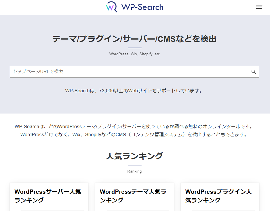 参考にしたいサイトを調べて、使用されているテーマやプラグインを調べることができる。