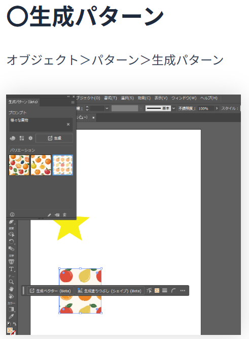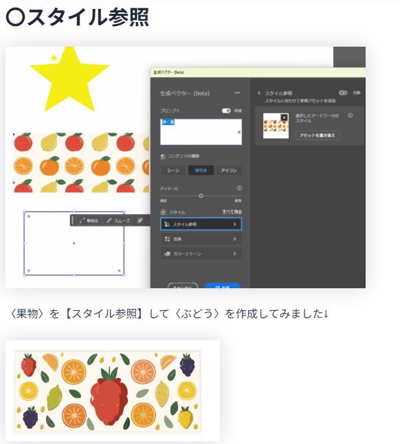 AIを使用したillustratorの活用例を今回の授業で学び、学んだ内容を使って様々な作品作りに挑戦できて楽しかったです。