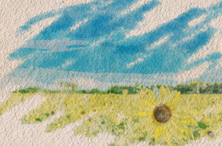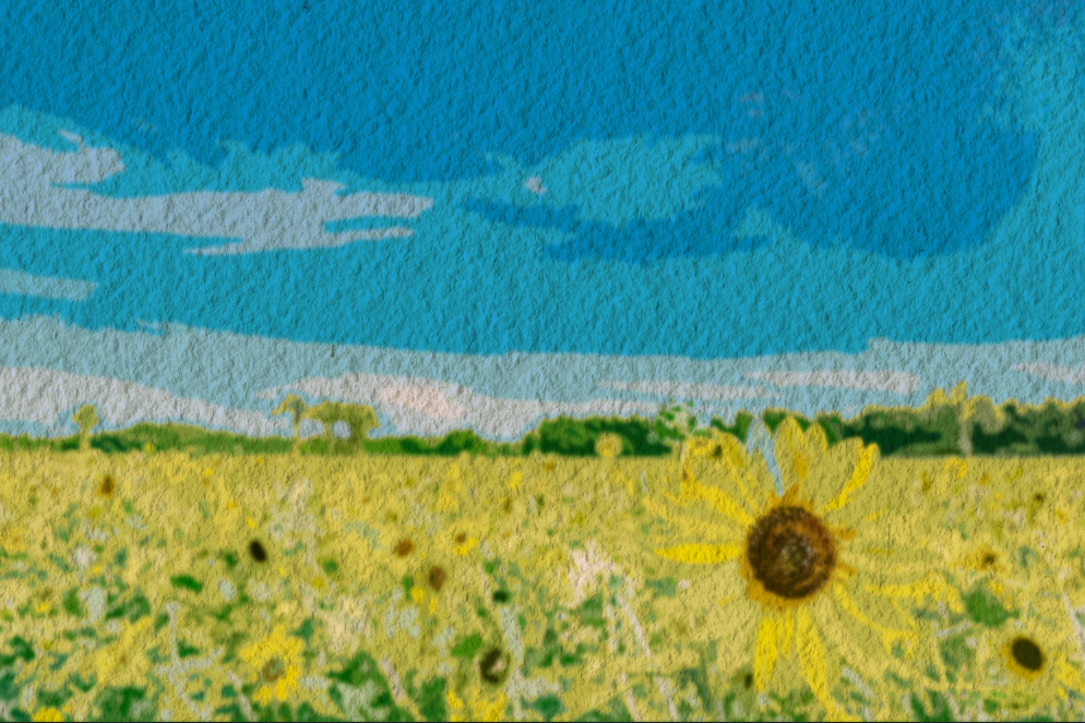 ひまわりの部分を文字で潰さずに意識して作ってみました。
