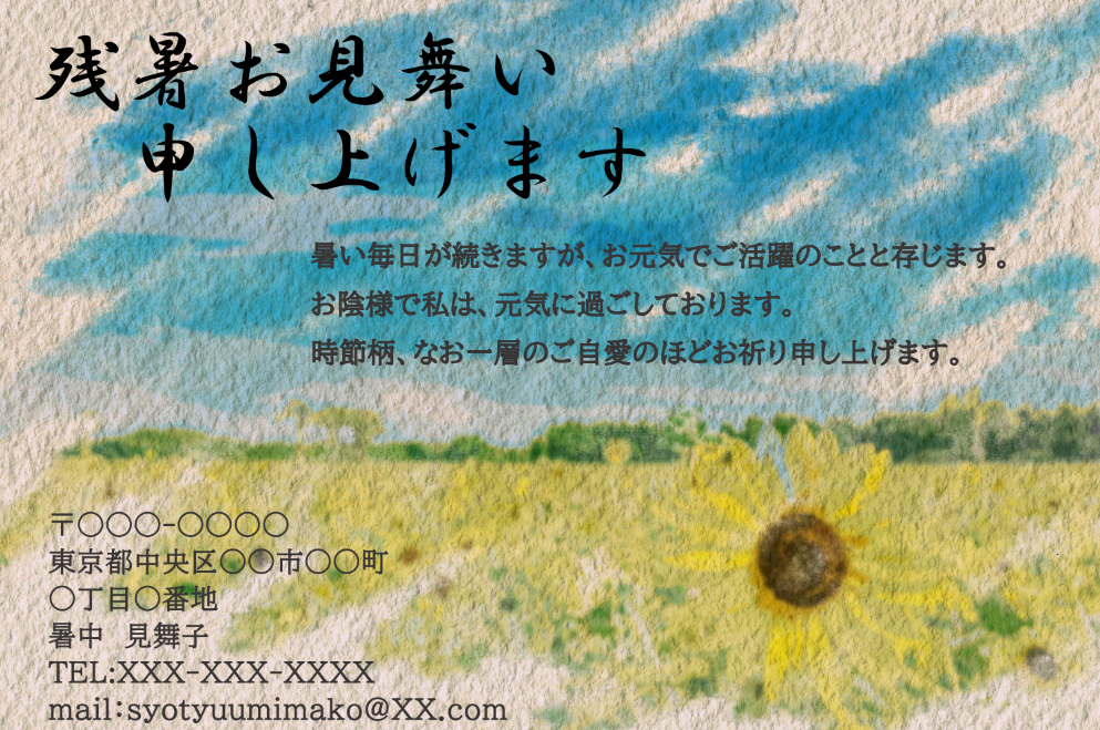 『残暑お見舞い申し上げます』の部分は筆文字にし、