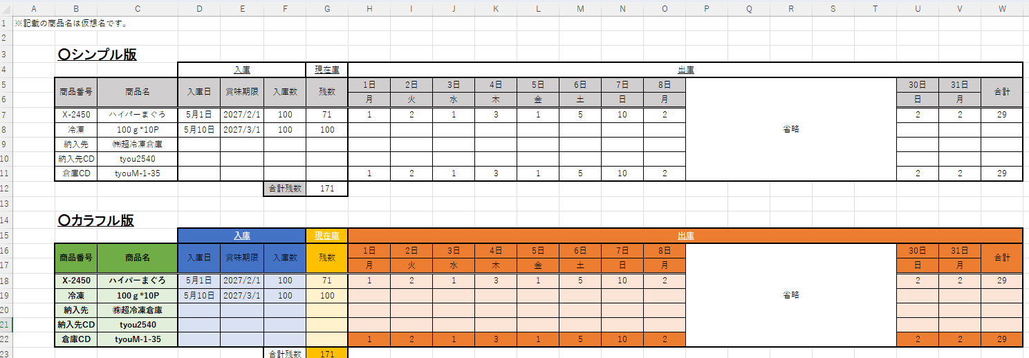 (SUM/AVERAGE/四則演算/IF / VLOOKUP)→在庫表作成等